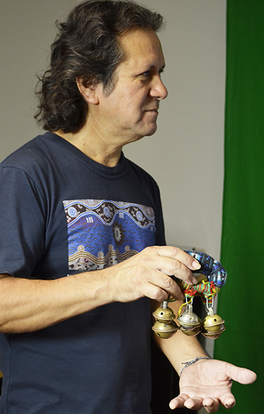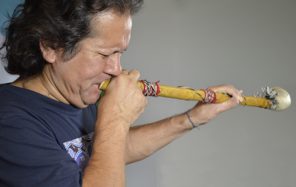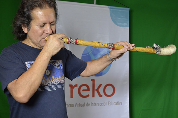 Cristian Márquez aceptó nuestra invitación de participar en el proyecto aportando sonoridades de nuestro pueblo originario a través de la trutruka, trompe y cascahuillas.