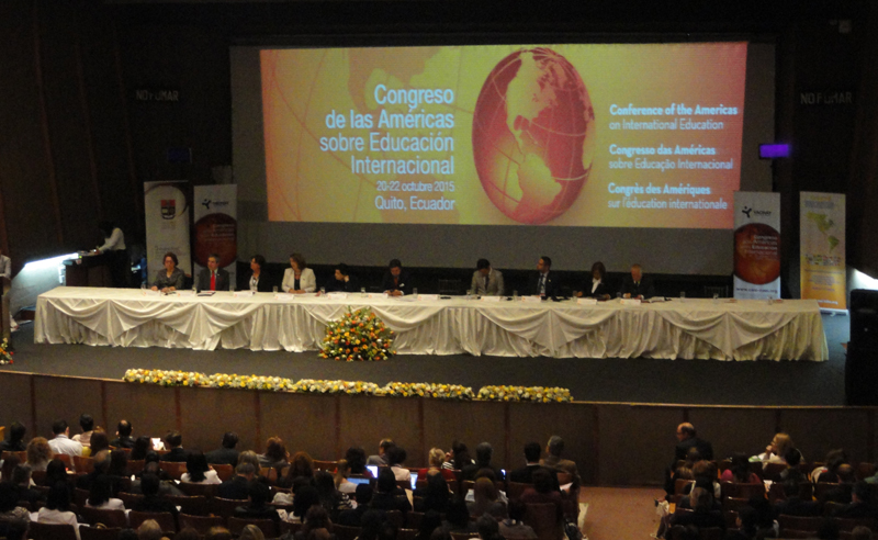Entre los días 20 al 22 de Octubre se llevó a cabo en Quito – Ecuador la IV Edición del Congreso de las Américas sobre Educación Internacional – CAEI-Ecuador 2015 bajo el tema “La Internacionalización de la Innovación, Ciencia y Tecnología: La Construcción de una Agenda Interamericana”, evento organizado por la Organización Universitaria Interamericana (OUI) en su calidad de Secretaría Ejecutiva del CAEI, la Escuela Politécnica Nacional (EPN) y el Instituto de Altos Estudios Nacionales (IAEN), con el apoyo del Ministerio de Relaciones Exteriores, Comercio y Desarrollo de Canadá (DFATD) y la colaboración de las 26 Asociaciones Firmantes del Memorandum del CAEI.
